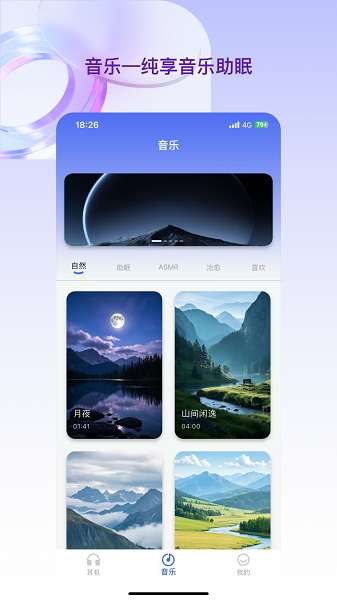 1、打开应用并选择音乐,找到喜欢的轻音乐歌曲播放。