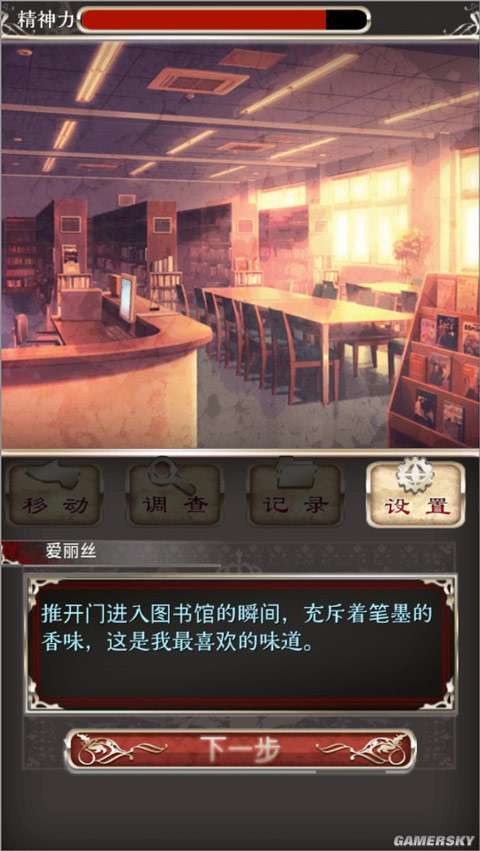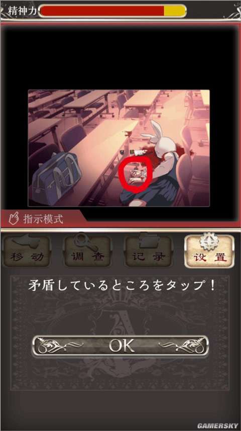 调查所有能调查的地方,先调查书包,然后拿走爱丽丝的学习工具,来到讲台拿走上门的纸,调查模式下选择【思考】,进入剧情。
