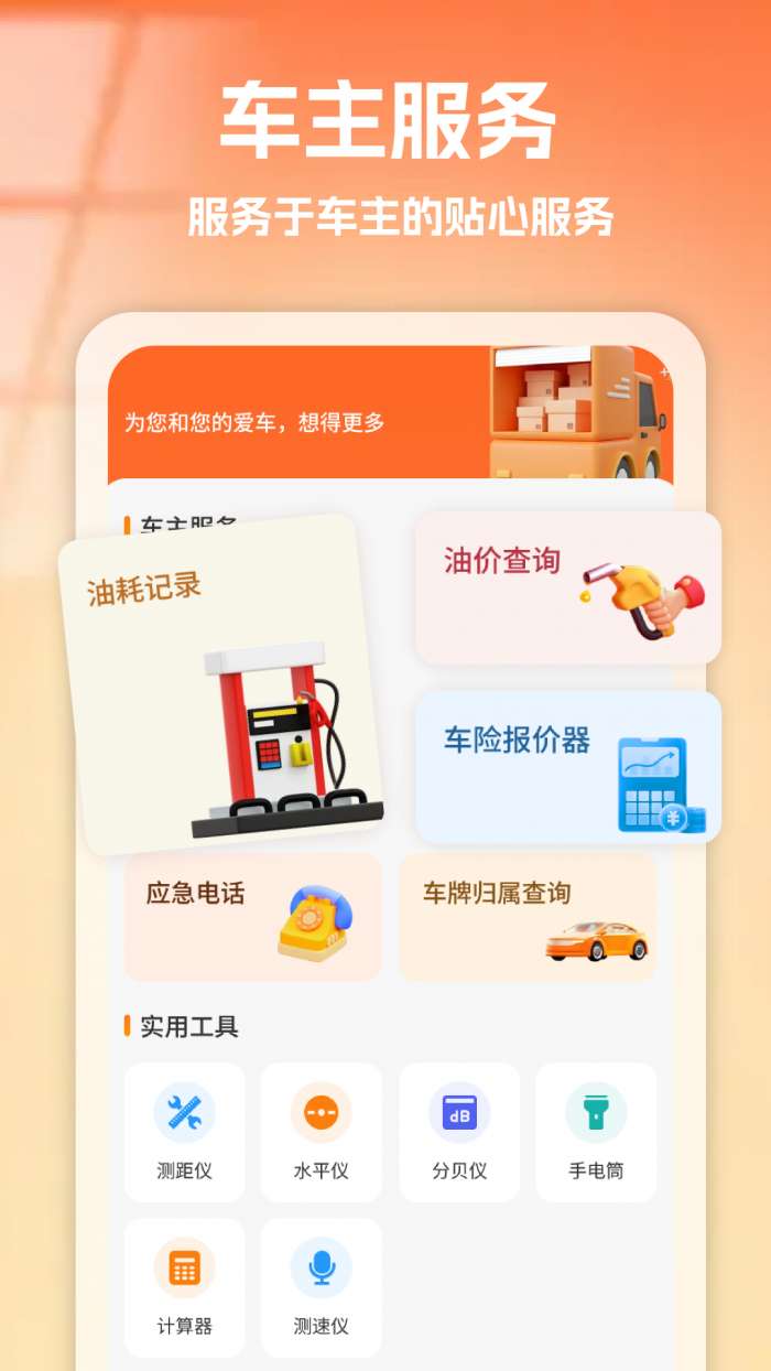 3、实用工具贴合司机需求,降低运输成本。油价查询、车险计算、油耗记录等功能,能帮司机实时掌握市场动态和车辆状况,合理规划运输成本,减少不必要的开支,提升运输收益;水准仪、测速仪等工具也能为运输工作提供便利,让每一趟运输都更顺畅。