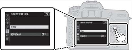 1、在设定菜单中选择连接至智能设备,然后加亮显示开始并按下ok键。