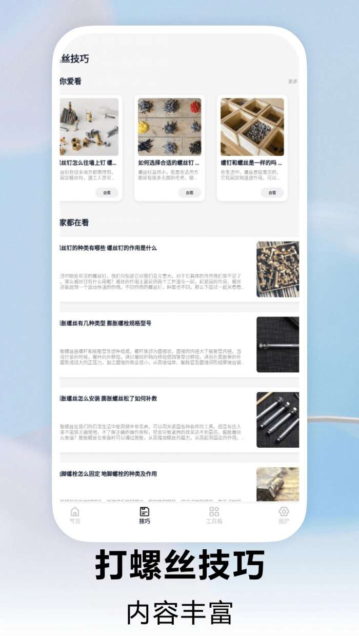 2、之后在技巧页面中,用户还可以对各种类型的螺丝使用技巧进行了解。