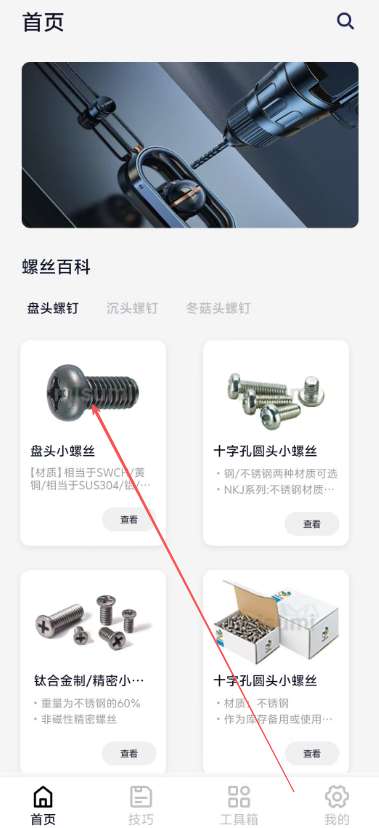 1、用户进入软件之后可以直接在首页中对各种螺丝的百科知识即可进行查看。