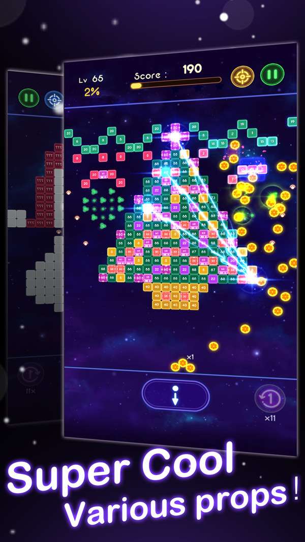 1、操作方式是按照简单就是利用自己当前数量的球进行弹射,有的方块上面没有数字显示,一碰就会消除掉。