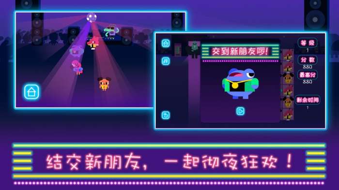 3、在首页就可以选择两种夜店的蹦迪舞台,游戏中的动物都已经穿好了服装后面的挑战就是开始慢慢的而累计新的成就;