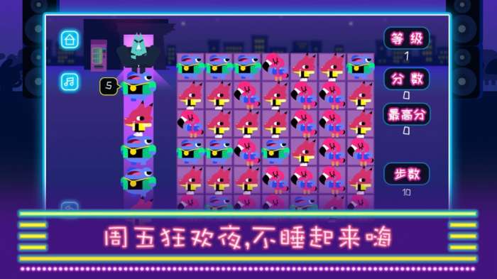 伊牧狂欢派对在游戏中有不同的动物就形象的角色,在这里大家晚上都会为了去夜店做准备,会有很多刺激警报的音乐在界面中出现后面的任务就是开始收集新的角色完成挑战。在这里会有挑战步数的规定只要根据左侧的角色说出的数量开始在中间的消除板块完成对应的消除就可以了,大家要注意这里是有步数限制的。基本上每一个关卡都是差不多的。