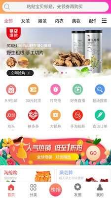 内券最新版用户还可以点击大额券在这里用户可以看到非常多优惠券并且金额都是比较大的,一下子就为用户节省了一大笔钱,非常实惠。另外还有快抢板块,在这里用户能抢到实时销售人气榜单的商品并且都是可以领券购买的,总而言之在这里用户不用考虑自己买的东西太贵。