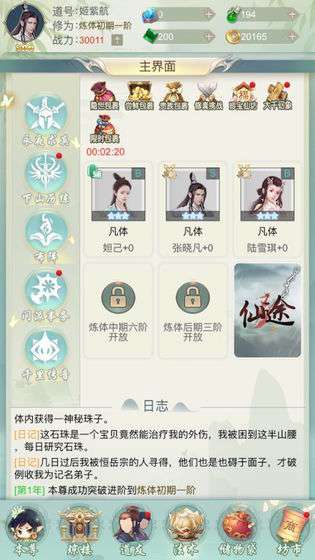 是一款很悠闲的修仙游戏,游戏相当于一个笔记本,一边修仙一边记录你的成长历程,凭借自己的努力慢慢的成长吧。