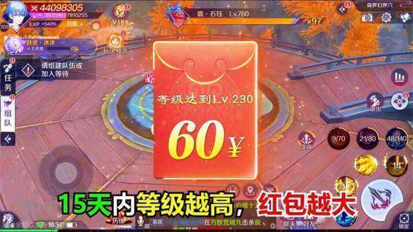 抖音梦幻天姬红包版是一款拥有超多红包的仙侠游戏,而且每天还会为你更新一些兑换码,用它来兑换各种武器,帮助你在各种打怪升级的时候提升战力,面对不同等级的玩家,你的对应措施要有所改变才好,能以最快的速度获得宠物是最好的,可以加快你修仙的速度。