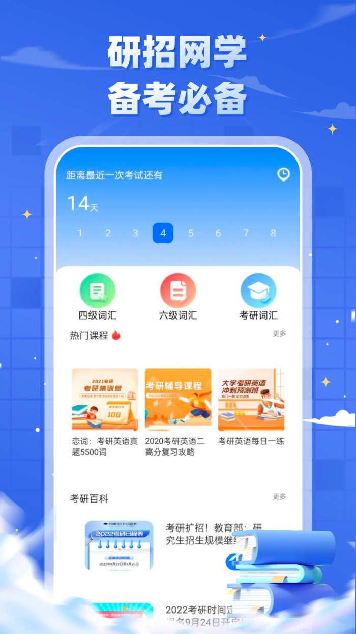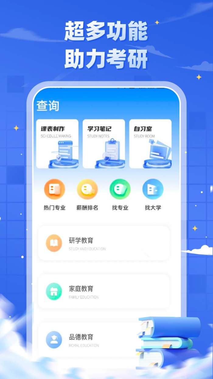 4、考研百科和信息:此功能提供考研相关信息和知识,包括考试政策、招生信息、考试大纲等,帮助学生了解考研最新动态和趋势。