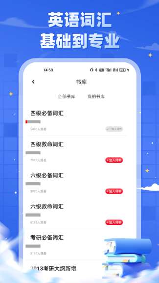2、四六级及研究生词汇卡:此功能提供丰富的词汇卡,包含四六级及研究生核心词汇,方便学生随时随地的词汇记忆。