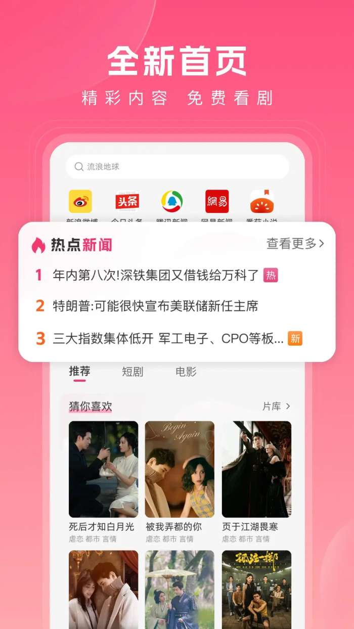 1、人气推荐  可以推荐所有热门小说、电影、新闻,获得各种热门内容。