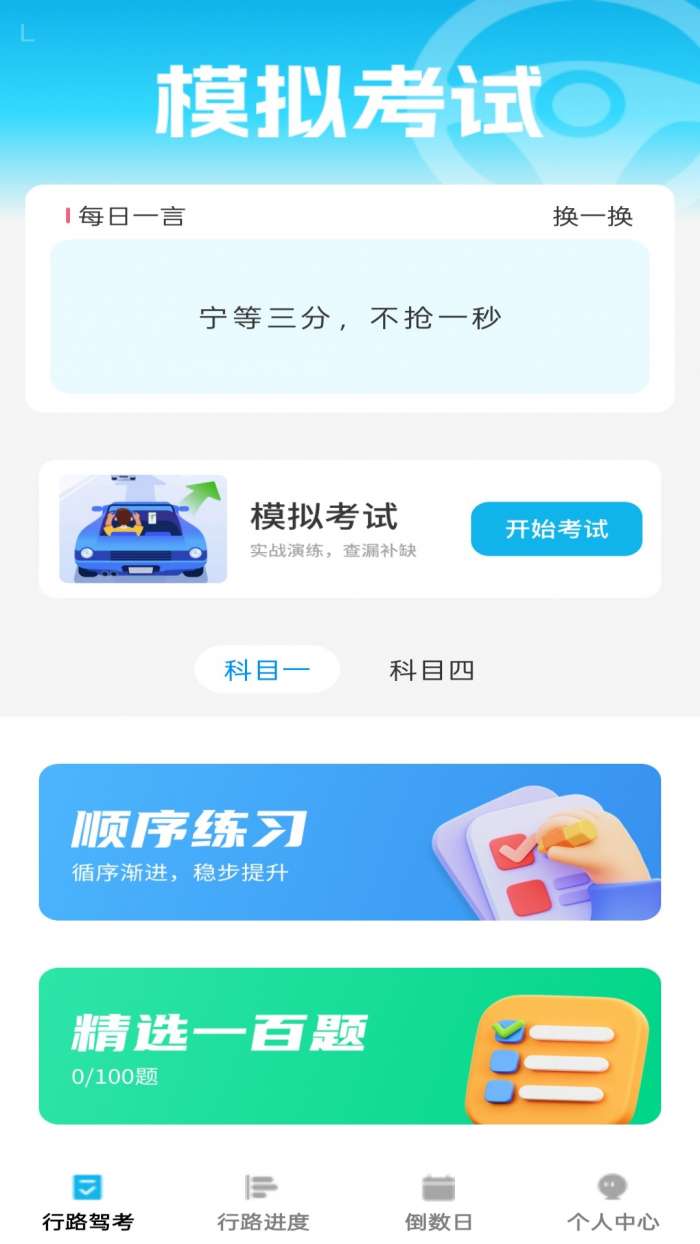 1、进入行路通APP后,在首页学习模块选择"顺序练习"功能,系统将按题库顺序出题。