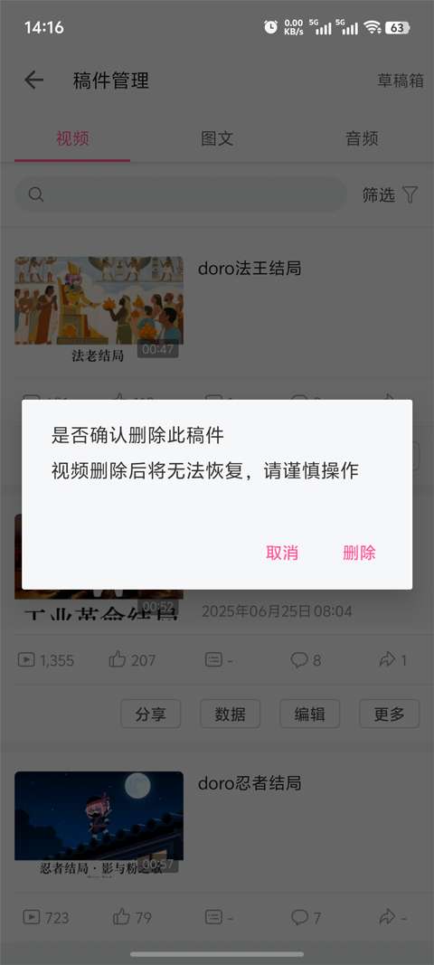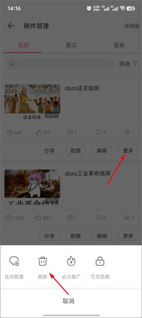b站软件怎么删除自己的投稿
