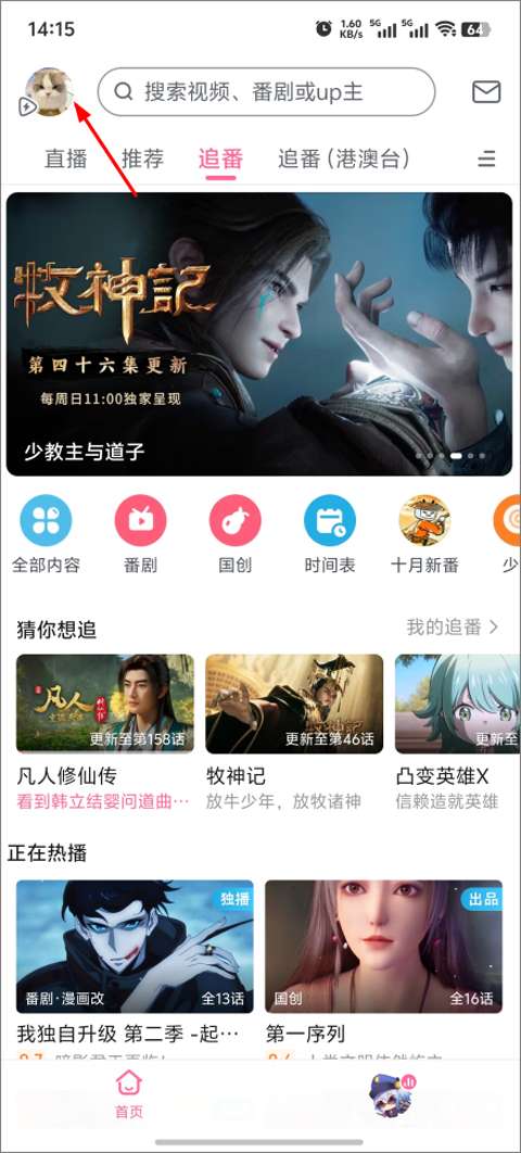 1、首先打开b站,进入后点击左上角头像。