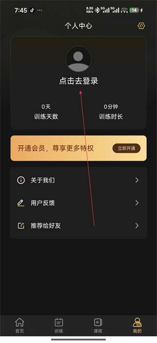 1、打开凯格尔训练,进入个人中心页面,点击“登录”按钮,您将被重定向到登录界面。