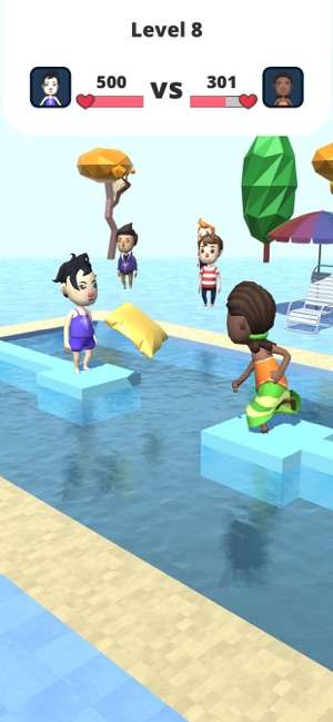 枕头战斗机在游戏中,玩家们参与的是枕头大战,在游泳池上值班的聚会和其他的小伙伴们一起开始完成枕头大战。在这里大家可以看到两个角色分别站在泳池的两端,然后开始挥动手中的枕头互相的对待,只要把对方击倒,就算胜利每次挑战会设定一些障碍物,还有就是需要根据自己的经验控制好时间,并快速的进行回击这里有回合适的比赛,也会为大家设定一些现实的任务可以线上的玩家们一同开始挑战。