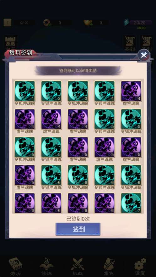 3.每次执行不同的任务时,您都可以进行签到,以便了解一些不同的秘籍。