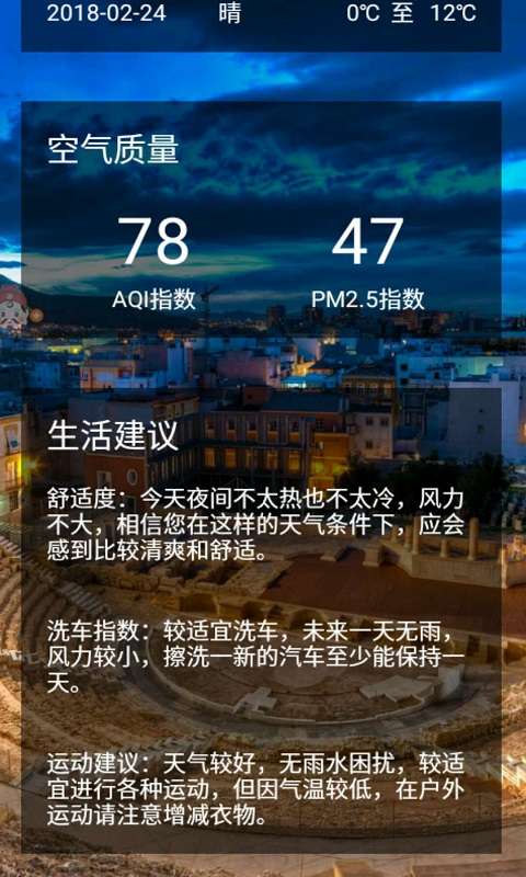 3、不仅如此,软件还提供了生活指数和空气质量实时报告。帮助你及时了解天气污染情况。