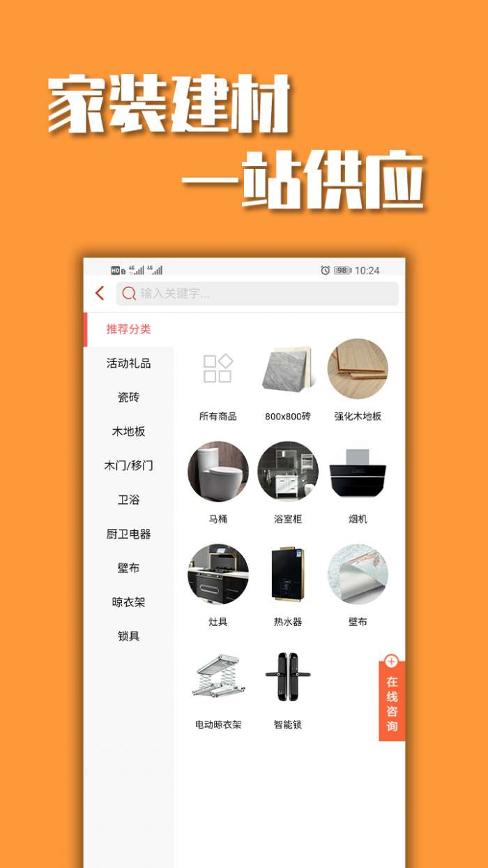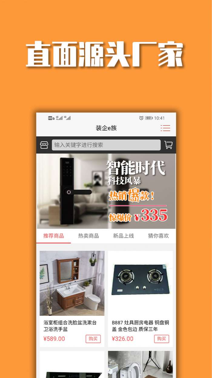 装企e族是一款装修服务的应用,这里为装修公司提供了工厂的出厂价格,能够让利益得到最大化,为上游的工厂企业打开全新的销售渠道,以便更好的提升业绩,这里的商品种类很丰富,有瓷砖、定制家具、软装的家具、锁具类的、电器类的等等。