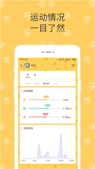 3.记录宠物的日常运动时间,距离和消耗的卡路里。