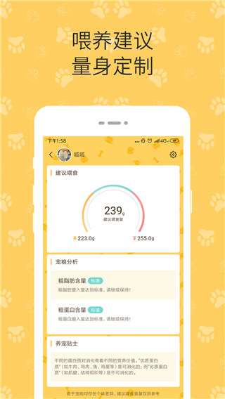 3.可以详细记录狗的每月运动时间,卡路里等数据,使养宠物更加科学。