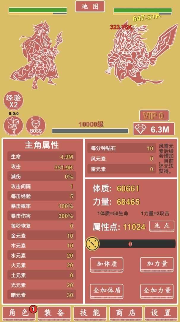 1.通过各种技能加点来强化元素英雄。