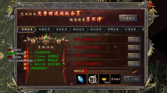 注:左边如传世之刃的界面显示区服飞升进度,中间为区服上交榜单,右边为圣元晶石。