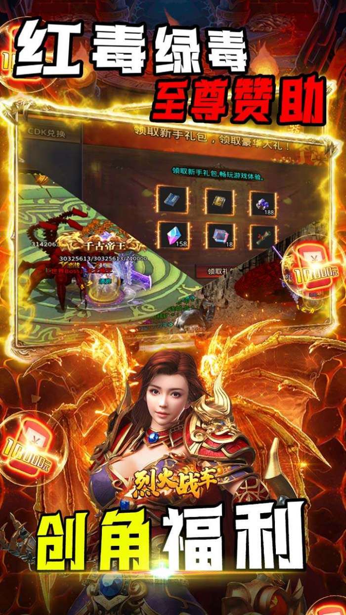 《烈火战车》内置0.1折永久不限时,不玩儿虚假,永不结束!登录就可免费领取至尊赞助!新手礼包登录即可领取,更有刀刀红毒绿毒,逐日剑法和开天斩,超变超爽的游戏体验。每日登录大量元宝道具和实物免费送!实物兑换R点,点数兑换灵符,首爆更有成百上千R点可嫖,无限爆灵符!