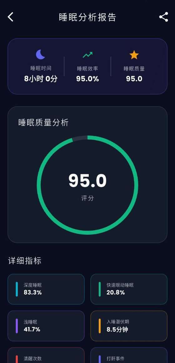 1、科学准确的分析:采用多维睡眠算法,评估结果符合实际感受。