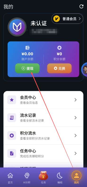 4、用户进入软件之后可以直接在我的页面中点击提现即可进行下一步操作。