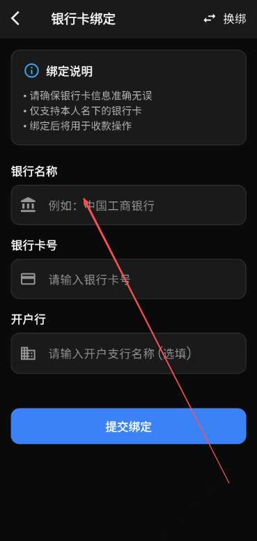 5、之后需要用户对银行卡进行绑定之后即可成功进行便捷的提现服务。