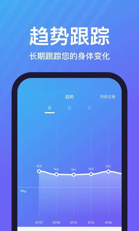 2、您可以随时查看各种身体数据的变化趋势,并以曲线格式显示变化。