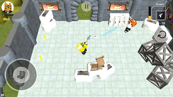 猫与狗大战这里面的主要角色就是一只猫和一只狗,他们两个种族业着在对战,所以玩家可以自己选择当猫还是当然后开始对角色进行收集培养,以及选择不同的武器开始对战。这是一个3D模块打造的世界,在世界中可以利用场景中随机放这个道具来作为防御物,然后攻击你的对手,也就是狗。这有多种模式可以参加,比方说野外场景或者是室内,还有就是多人对战。