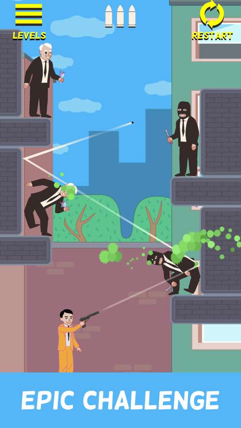 1、也是属于你的敌人,你需要合理的利用自己手中的枪支来制约这些黑衣人,要让他们不敢面对你。