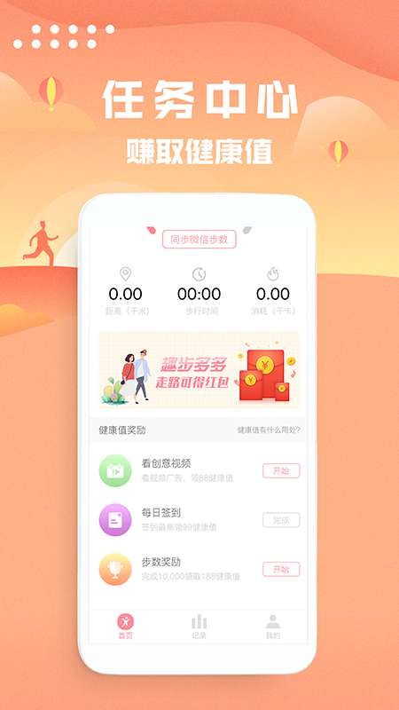 1、提供记录步数的功能,这里有比较专业的计步方法,轻轻松松就能够通过计步赚钱了,超级好用的一个平台。