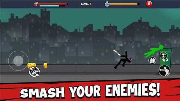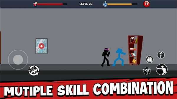 4、漫画画风,通过火柴人的简单风格,保证游戏动作的流畅性,打击感超强。
