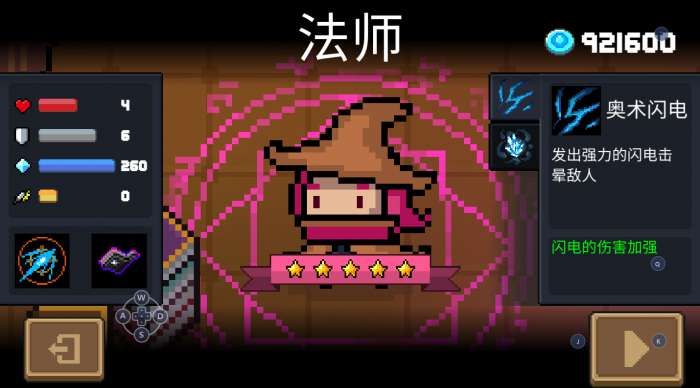 技能1:奥术闪电:发出强力的闪电眩晕被击中的敌人。满级后闪电伤害增加。