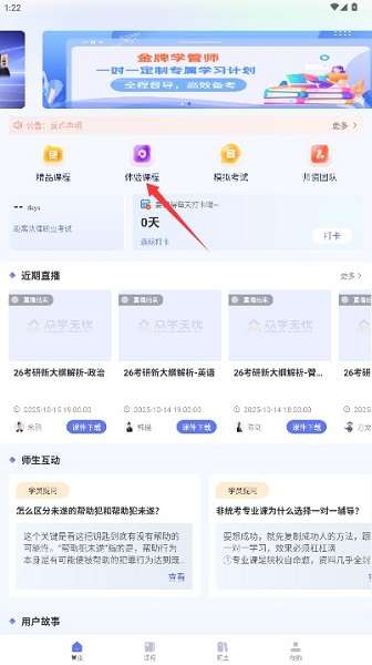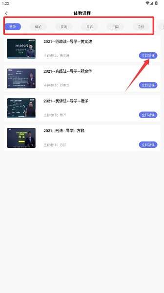 3、进入应用首页后点击选择体验课程功能选项,进入免费课程内容浏览页面。