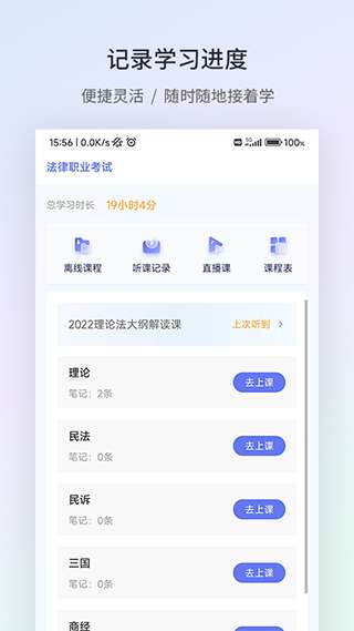 4、专注和不受干扰的环境:界面简单,没有社交或娱乐功能,为国家法律职业资格考试创造了一个身临其境的学习氛围,提高了你在准备过程中的专注力。