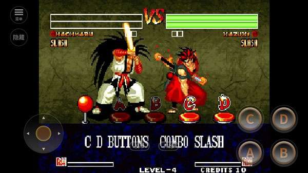 1、基本键位: A:轻斩(威力较弱、但速度较快); B:中斩(威力较强、速度较慢); C:重斩(威力最强、速度最慢); D:踢(威力最弱、速度最快)。