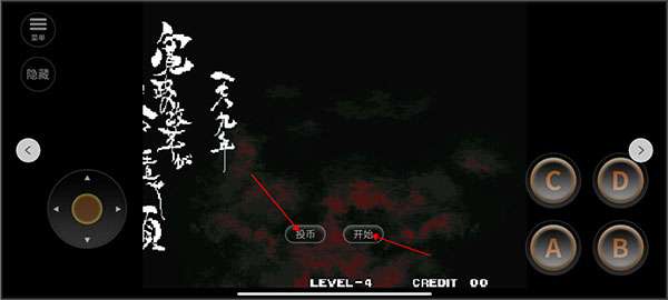 1、安装好侍魂4手机版,进入游戏进行投币,点击开始。