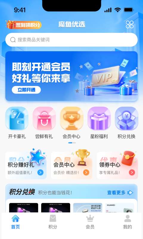 魔鱼优选是一个会员制的电子商务平台,专注于 “消费积分和商品积分兑换”。以 “用积分当钱” 为核心玩法,打造了从消费到礼品兑换的闭环权益生态圈,为用户带来更加智能、有利、温暖的数字生活体验。在这里,每一次购买都可以累积积分,每一个积分都可以兑换好的物品。你不必花额外的钱把大量的数码产品、家居用品、美容和个人护理用品等带回家。平台界面清爽,分类清晰。无论是数码办公、家庭日用、食品粮油、母婴玩乐,都能轻松找到自己喜欢的物品。搭配专属会员福利、开卡好礼、签到惊喜等玩法,让日常购物充满小乐趣,轻松解锁边买边赚钱的快乐。