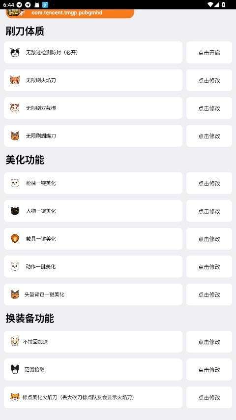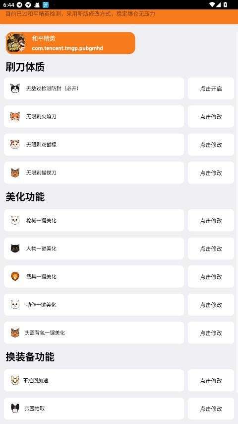 3、第二个功能板块有8个选项,包括专属修改、高低端机型选择等。