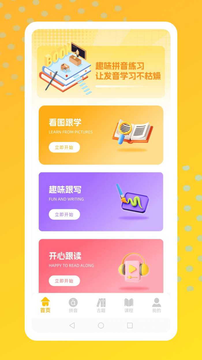 多元化工具:拼音字母表、拼音字帖、声调练习、拼音儿歌等资源一应俱全。