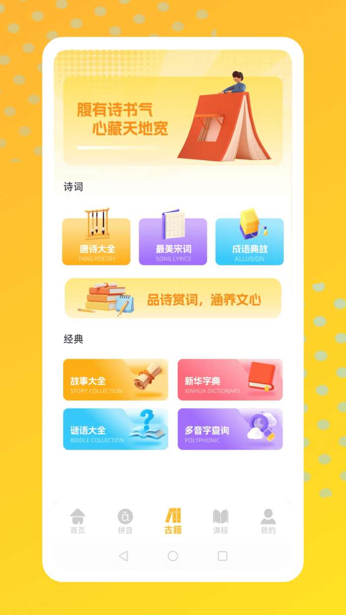 经典内容库:精选唐诗大全、最美宋词、成语典故等国学精华。