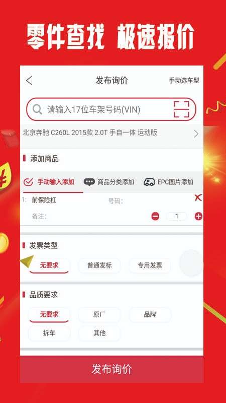 2、可以直接输入商品的编码、名称或vin进行查询,找货更方便。