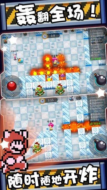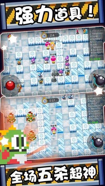 1、他有点类似于泡泡糖的玩法,所以说玩法还是很简单的,不会有一些复杂的东西,一些玩过泡泡堂的玩家,他就会觉得这款游戏还是相当的简单。