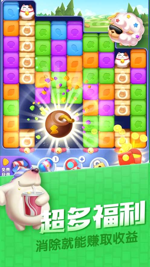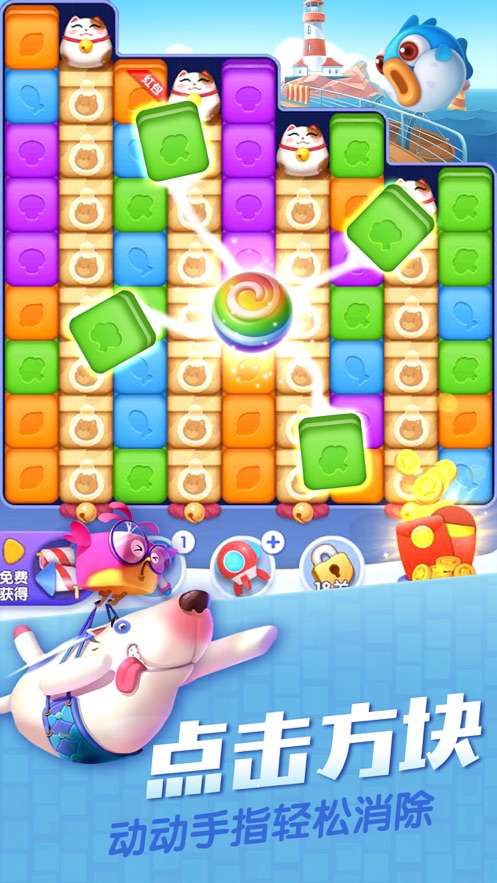 2、你要把相邻的同样色彩的方块去进行消除,一次性消除的更多,那么你就会去获得更多的分数;