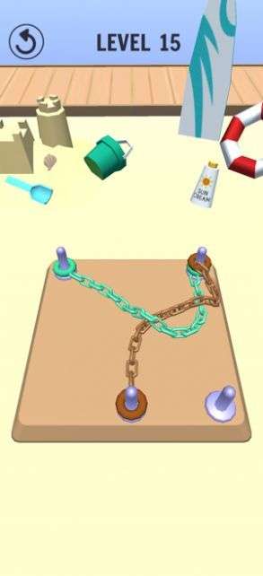 3.绳子缠在一起,玩家能够使用各种道具来更好的帮助自己将绳结解开。丰富的道具让玩家能够更加迅速解开绳结。