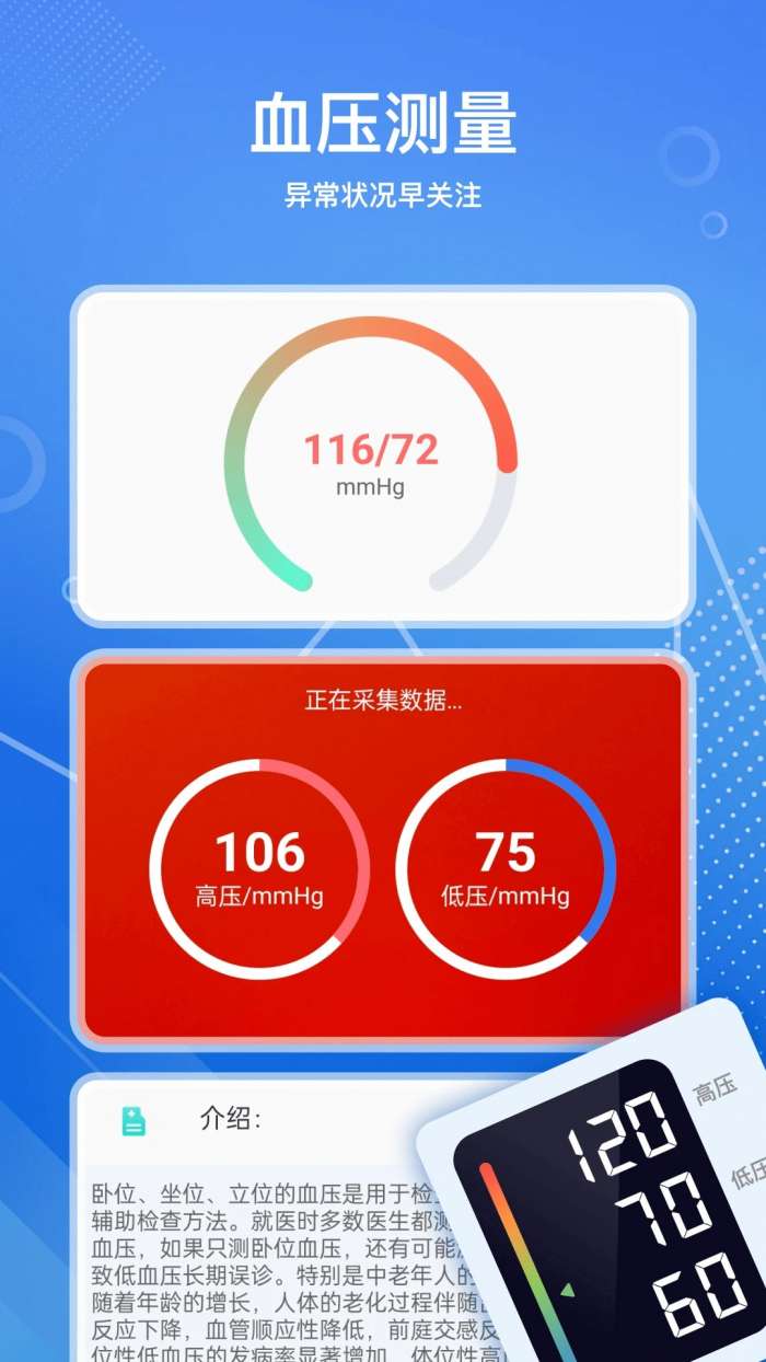 血压计是一款受欢迎的健康监测软件,拥有非常优秀的血压监测功能,可以智能监测用户的血压基本信息和数据,轻松了解查看,还具有全面的血压测量模式,随时让用户直接关注家人的身体健康,能完全满足所有使用需求,还具有简洁的界面设计,无需任何经验即可上手使用,随时随地自动监测血压数据,给用户带来全面的服务,还能实时更新各种健康新闻资讯,随时让用户搜索查询,有需求的用户欢迎下载软件吧。